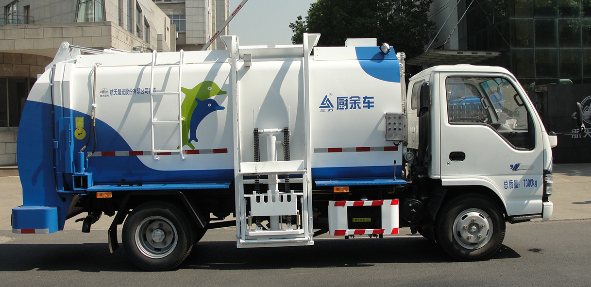 CGJ5070TCAE4型餐廚垃圾車是對(duì)賓館、餐廳、食堂的廚余垃圾、食品加工的廢料、副食品集貿(mào)市場(chǎng)和超市的過期商品等直接收運(yùn)的專用車輛。該產(chǎn)品通過底盤取力器驅(qū)動(dòng)液壓泵,產(chǎn)生高壓油,帶動(dòng)液壓系統(tǒng)工作,從而提桶機(jī)構(gòu)和頂蓋工作,將垃圾桶內(nèi)垃圾倒入箱體;到指定地點(diǎn),打開后門,推出推板進(jìn)行卸料,完成作業(yè)。